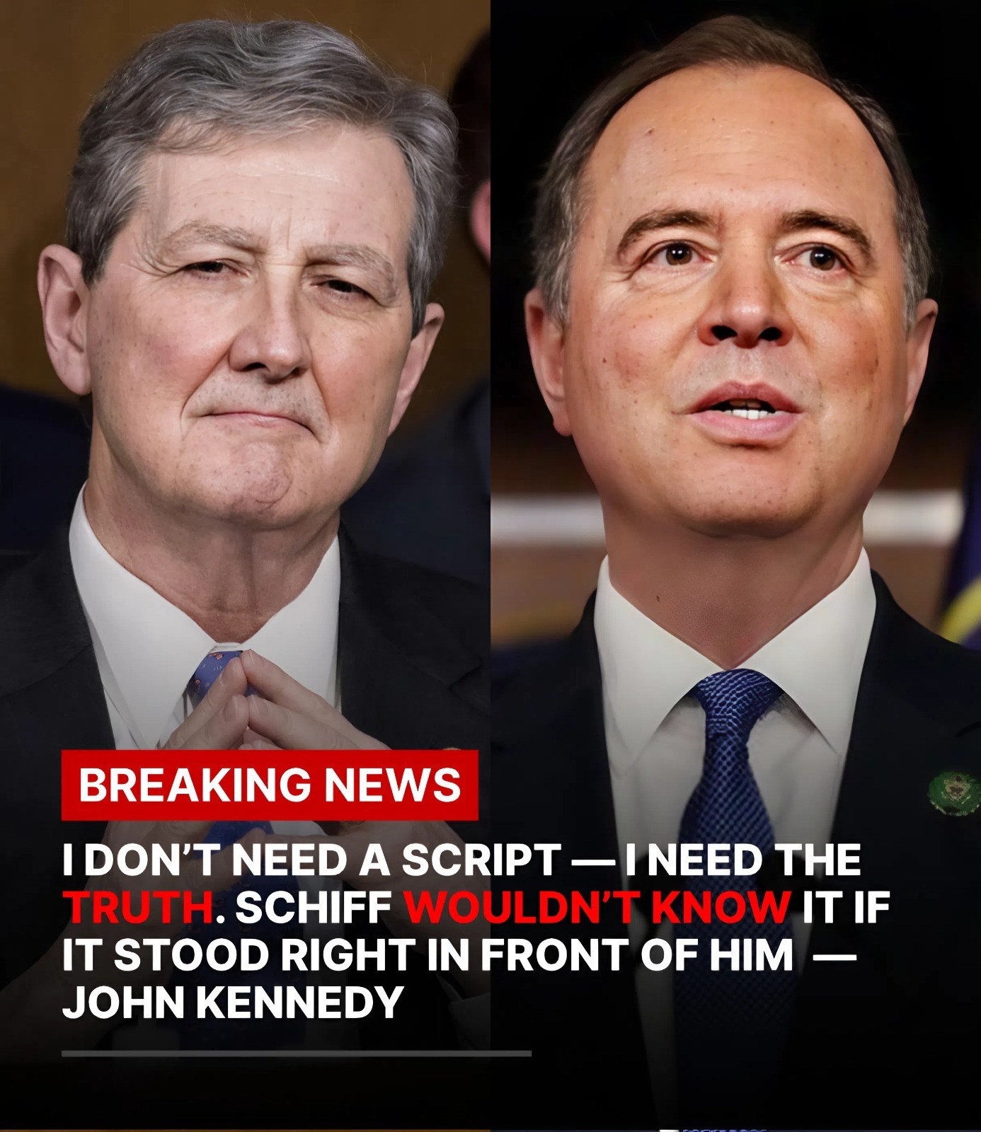 For 47 tense minutes, Senator John Kennedy of Louisiana dismantled Representative Adam Schiff in a verbal crossfire that peeled back layers of Washington performance and laid bare the corrosion of credibility in American politics. By the time Kennedy leaned back in his chair and uttered the now-viral line — “I don’t need a script — I need the truth” — the chamber had fallen into stunned silence.